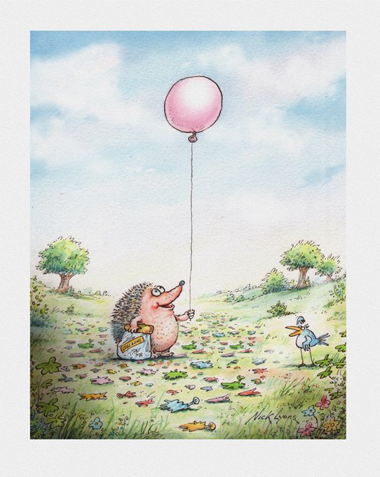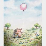 This is a late #painting for @AnimalAlphabets. My Hedgehog is having trouble keeping balloons up!! #cartoon #illustration #AnimalAlphabets