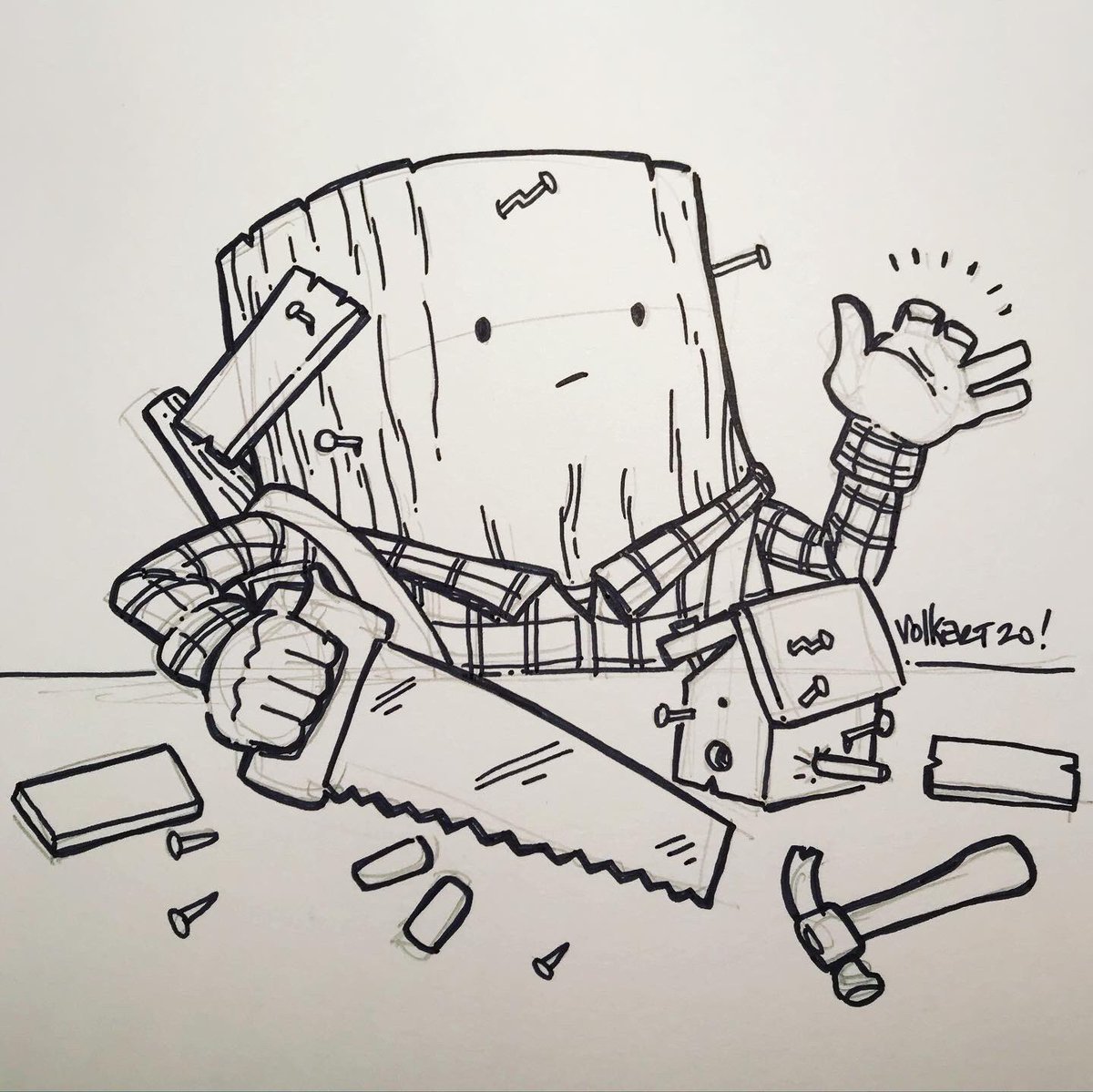 Just glue em back on and you’ll be good. #3 The shockingly inept carpenter log. #penandink #illustration #inktober #inktober2020 #octoberinks #log #logging #carpentry #carpenter #birdhouse #diy #whoops #saw