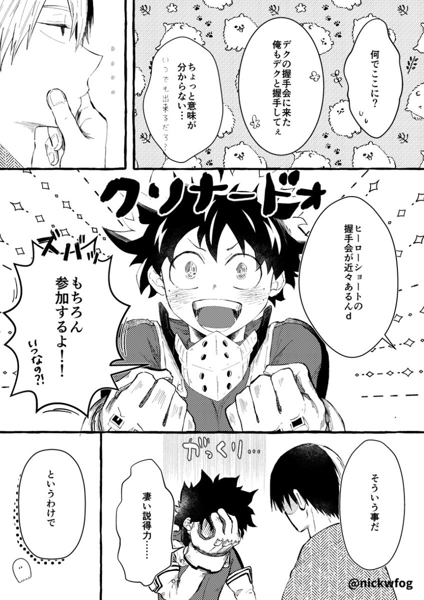 プロヒ 轟出 & 勝デク 🍰🥦、💥🥦 前回の後日談、押し切られたオファーの話。 この後💥から🥦へ怒りの鬼電攻撃。 twitter.com/nickwfog/statu…