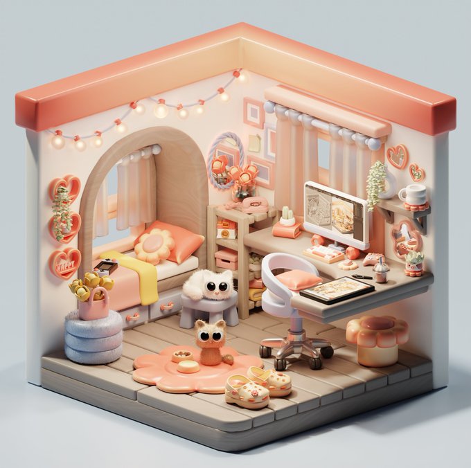 Hi #PortfolioDay !🌼 I'm Nicole, a 3d artist who loves to make lovely and cosy assets and spaces🍄 #b3d