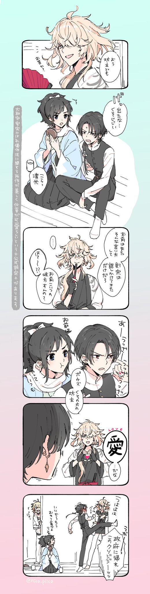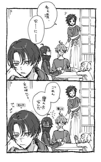 しこしこ描いてた天狼傳再演のらくがき(安定と清光)