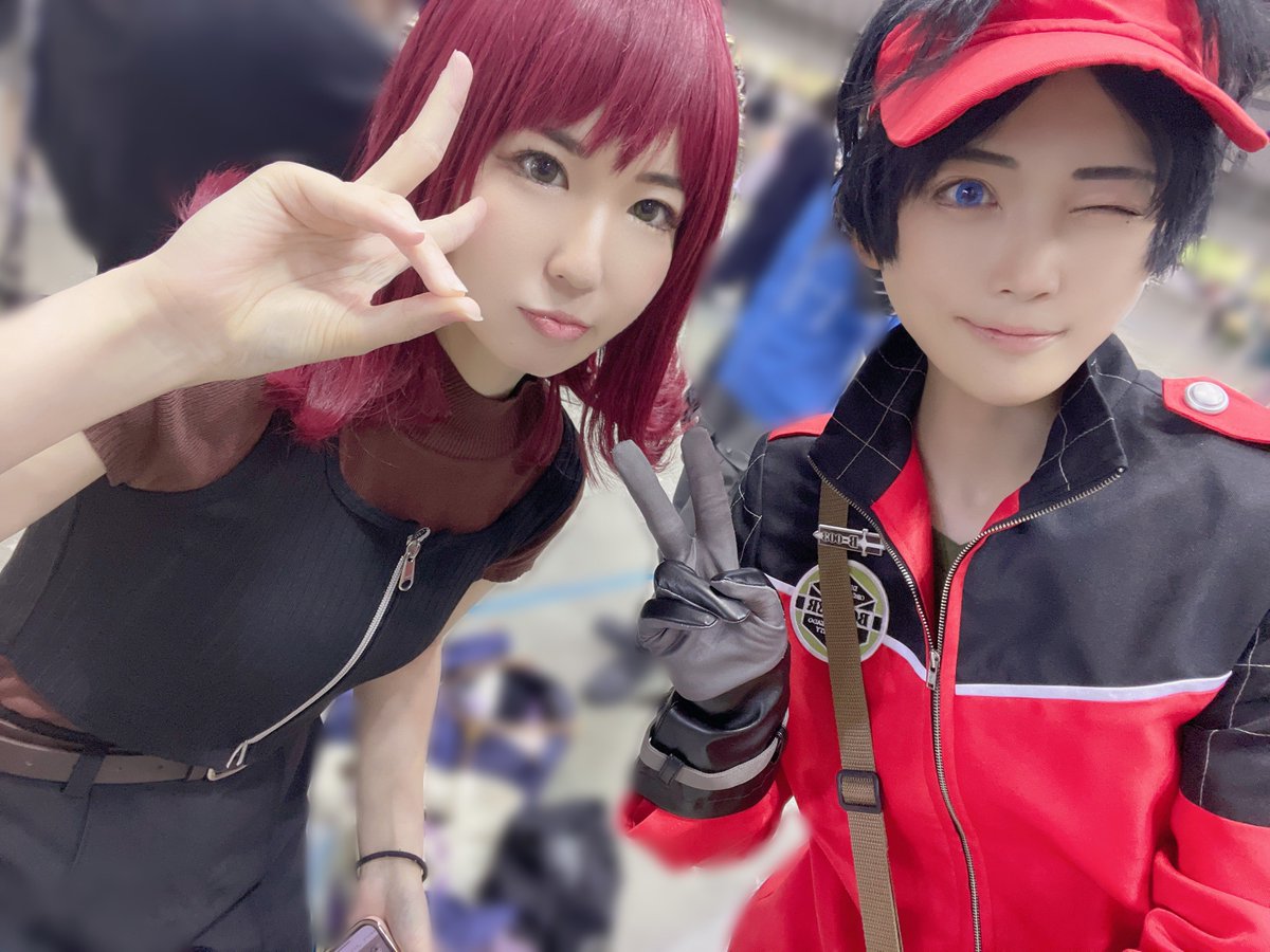 再掲😭コスプレ初め! 今更ですが昨日インテおりました!吾が手お疲れ様でした✌︎('ω'✌︎ ) 烏丸と出水で売り子させていただいておりました〜 久々にイベントの空気吸って、沢山の方にお話していただいて楽しかったです! もちさんが撮ってくれた写真身長差めちゃくちゃいい感じ感謝🙏
