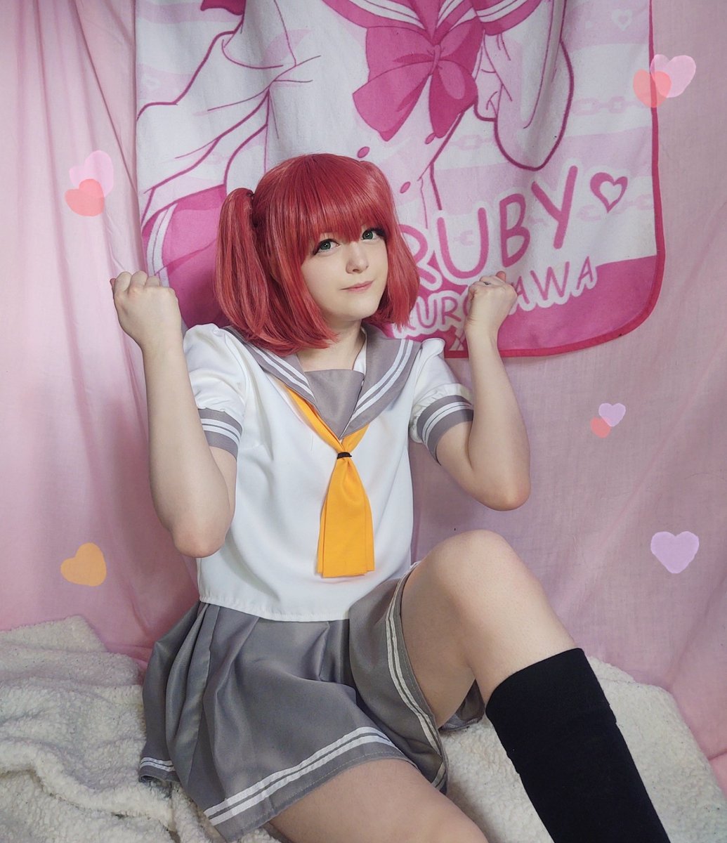 "If we gather up all our cuteness, the world will be a better place; it'll be fun!" ♥️ I recorded a dance video for the first time in a while, ill upload it tomorrow! #lovelivecosplay #lovelive #rubykurosawa #cosplay #aqours
