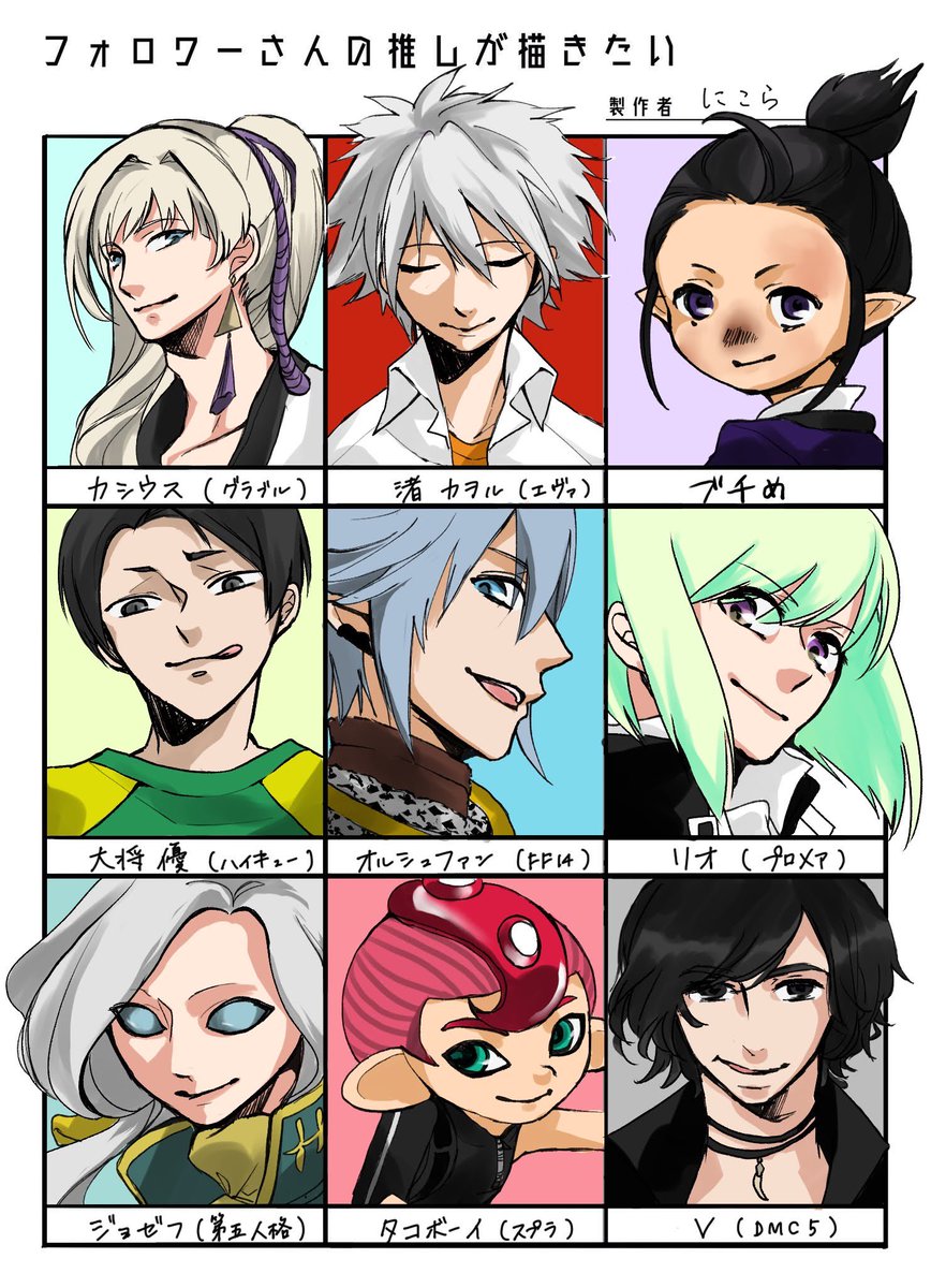 #フォロワーさんの推しが描きたい 年単位でお待たせして本当にすみませんでした………(スライディング土下座) 1枠空いてた分はジャンル被らない我が推しにしてみました