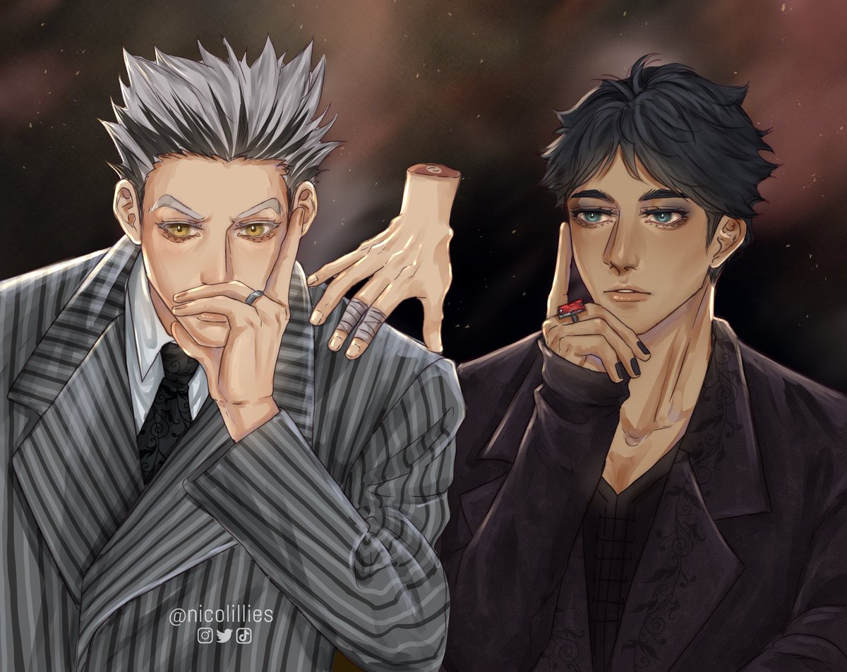 They’re judging you. Addams family AU that I never posted during spooky season 2022 Morticia - Akaashi Gomez - Bokuto Thing - Tendou #Haikyuu #bokuaka #haikyuufanart