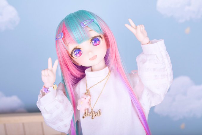うちの子かわいいので見てください😭💓💓💓急いで服まで作ってしまった😇 ウィッグは黒MAJO (@teoasinaba)様、ベアのネックレスはUNiconic(@UNiconicDOLL)様💕 #nicomeeple #DD #ドルフィードリーム #DDH10 #テオ印 #黒MAJO #UNiconic #MDDはいいぞ #うちのこかわいい #ドールオーナーと繋がりたい