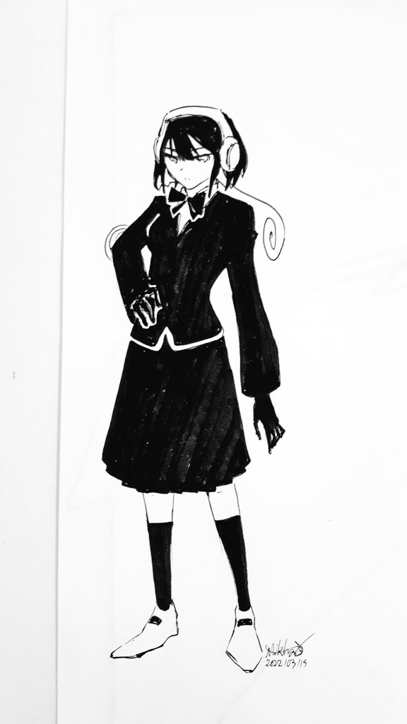 冬の制服を着たミュウちゃんを描いた #絵描きさんと繫がりたい #落書きギルド