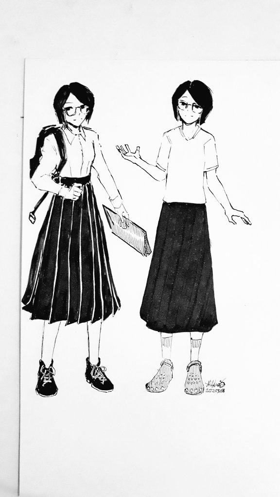 5 57 黒いスカートを履いている自分を描いてみた。ロングスカートを持ってないので、履きたい気分… #絵描きさんと繋がりたい #落書きギルド 22/03/18 13:45