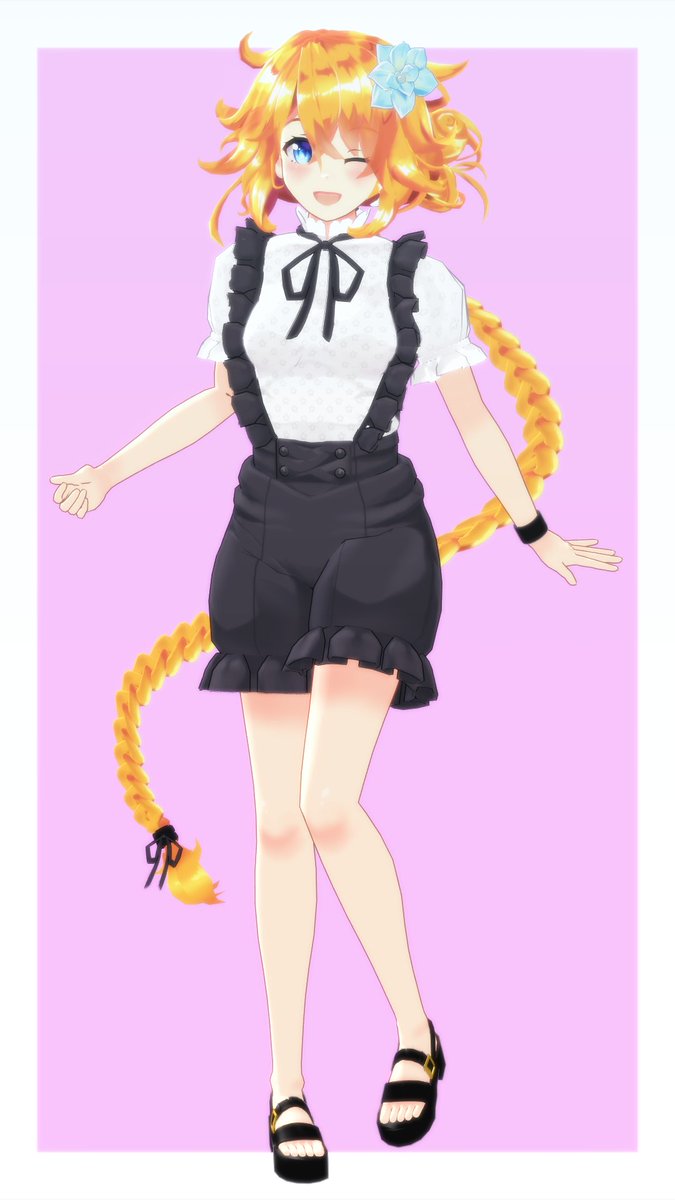 今回配布した御伽原江良夏衣装MMDモデルの全身です。 壁紙にどうぞ。 あと例のごとくGBも用意しました。 #えらすとや