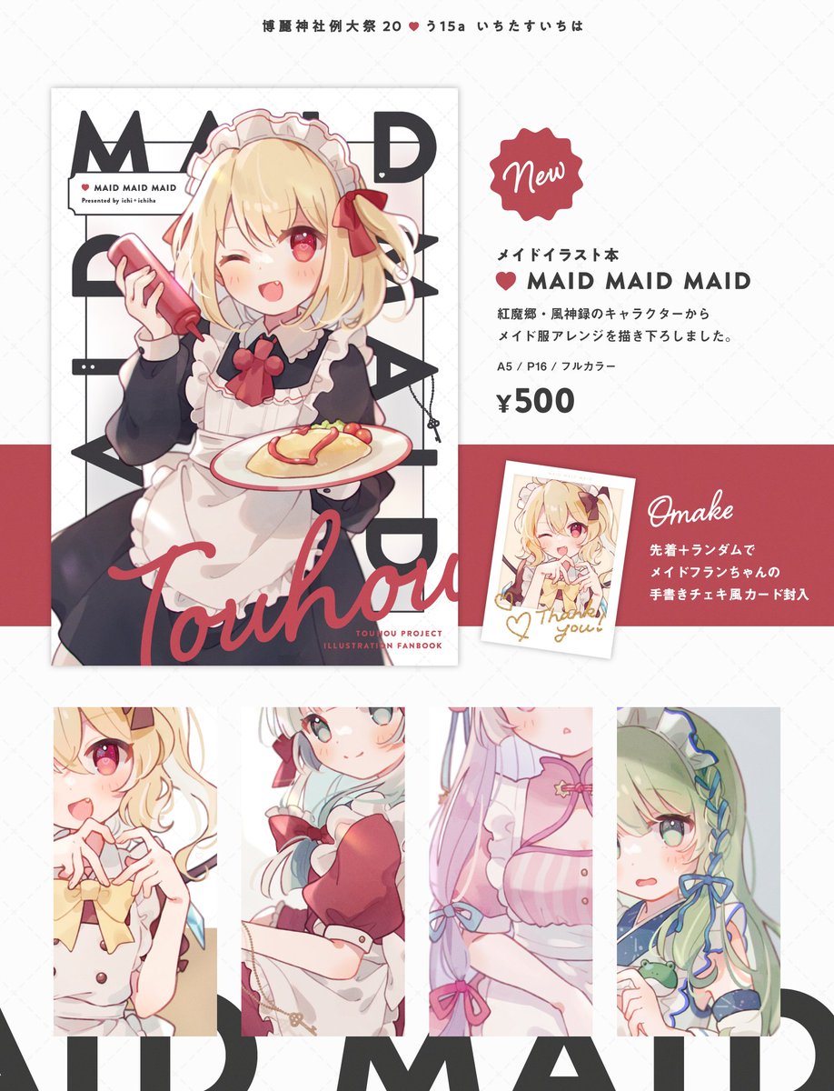 〖 通販のお知らせ 〗 #例大祭20 新刊のメイドイラスト本の 予約が開始いたしました! 🍈Melonbooks melonbooks.co.jp/detail/detail.… 🍓新刊サンプル・特設サイト maidmaidmaid.vercel.app 今回通販はメロンブックス様のみとなります。 よろしくお願いいたします〜🍴