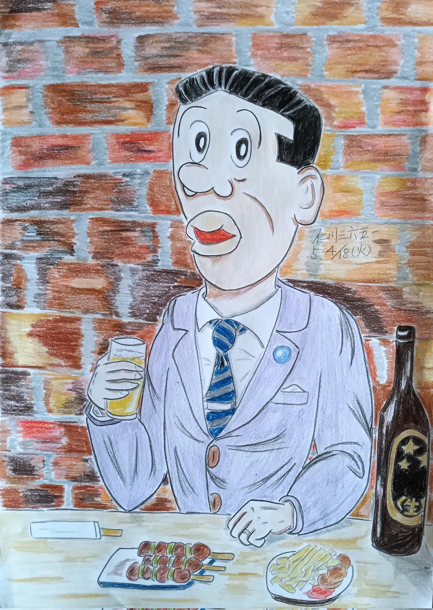#今月描いた絵を晒そう その二 久しぶりに描いた男性キャラクター。サザエさんの穴子さん。 今月16日、阪神競馬場で競走馬アナゴサンが1着になったのを祝うべく描きました😁😸 今日も新潟競馬場で3着に来たよ\(^o^)/