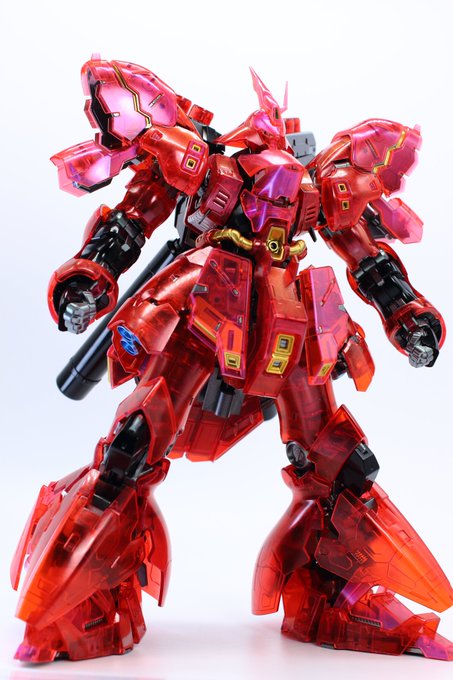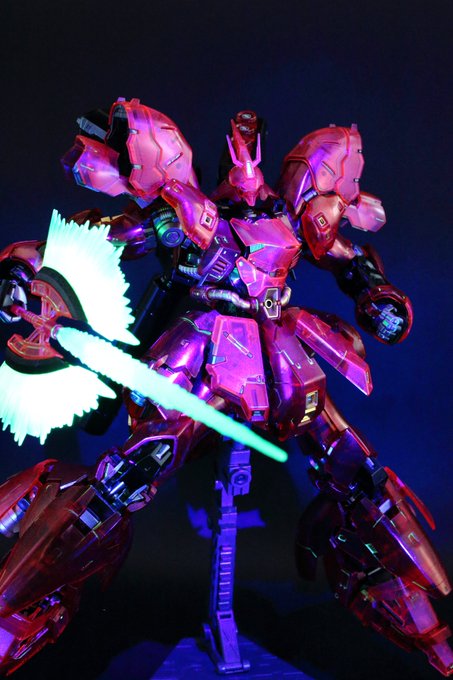 RG サザビー クリアカラーver完成 クリスタルカラーを使ってキラキラ偏光仕上げにしました✨ 外装:ルビーレッド、アメジストパープル フレーム:ルマリングリーン 写真では色変化がわかりにくいので動画つけます #ガンプラの画像を貼るとRTされると聞いて #サザビー #ガンプラ好きな人と繋がりたい
