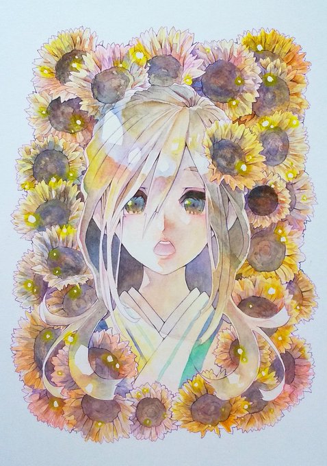 ヒマワリ地獄 もしくは ヒマワリまみれ 笑 #イラスト #イラスト好きな人と繋がりたい #絵描きさんと繋がりたい #art #ArtistOnTwitter #绘画 #水彩画 #アナログ絵描きさんと繋がりたい #オリジナルイラスト #透明水彩