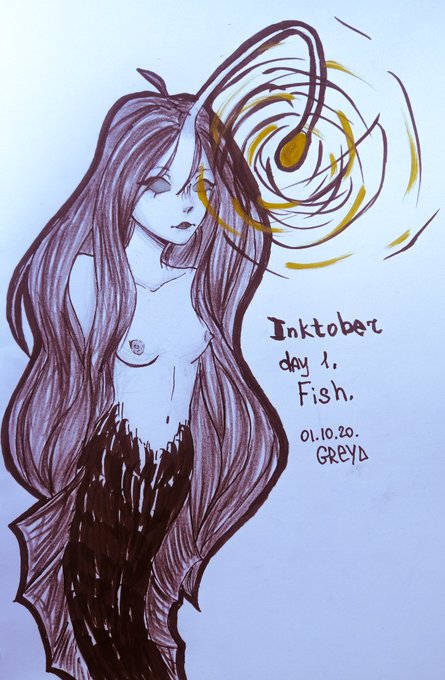 Да начнётся инктобер!!! День 1. Fish/рыба Хотел нарисовать глубоководную рыбу, потом русалку, и решил совместить. Вышла глубоководная русалка. #inktober #inktober2020