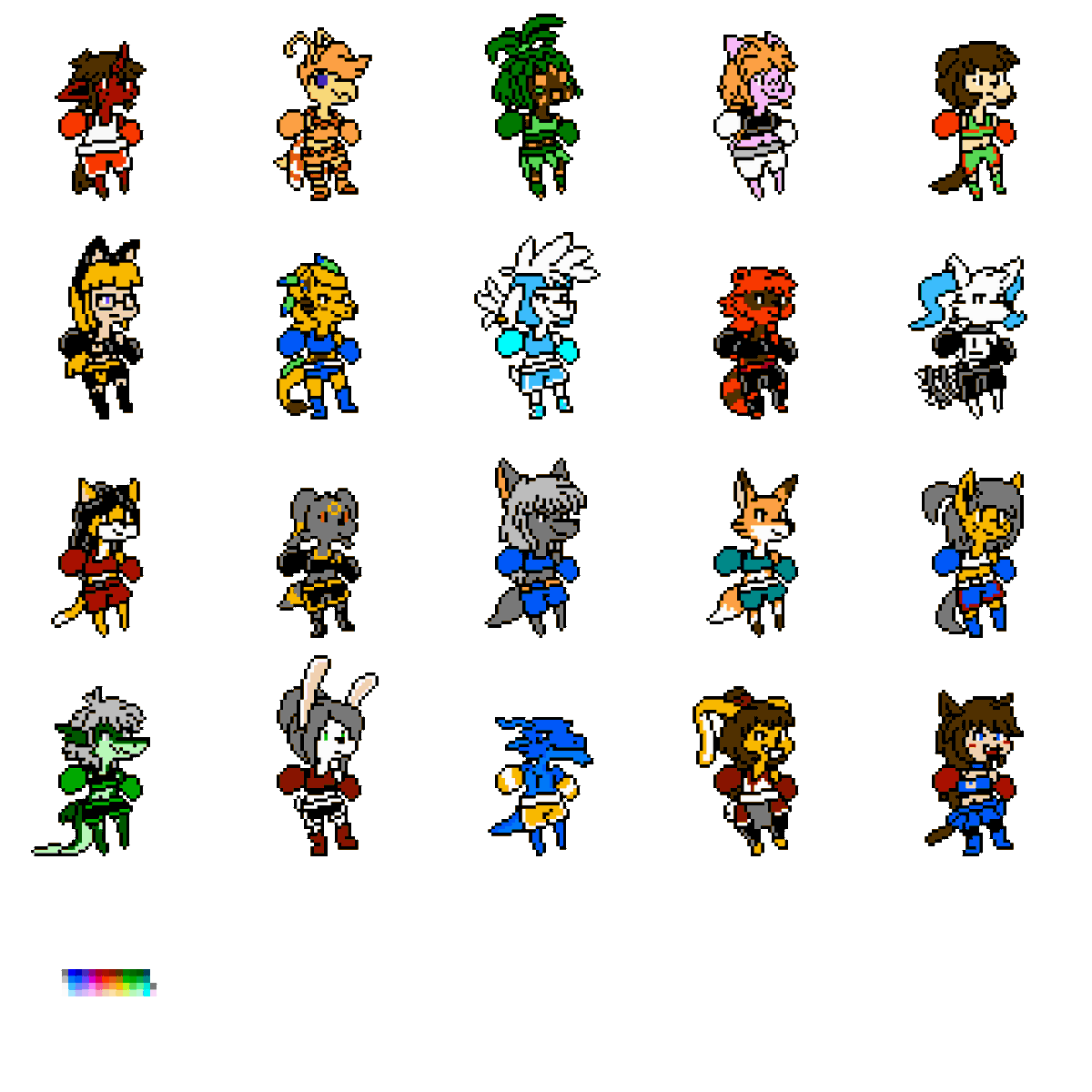 Worked on some more sprite works and came up with something very good in my opinion. Two boys, one is mine (red), the other one is not (blue) and a cute rabbit (also mine), followed by mockups. Really makes me wish to help make a game like this. #boxing#pixelart