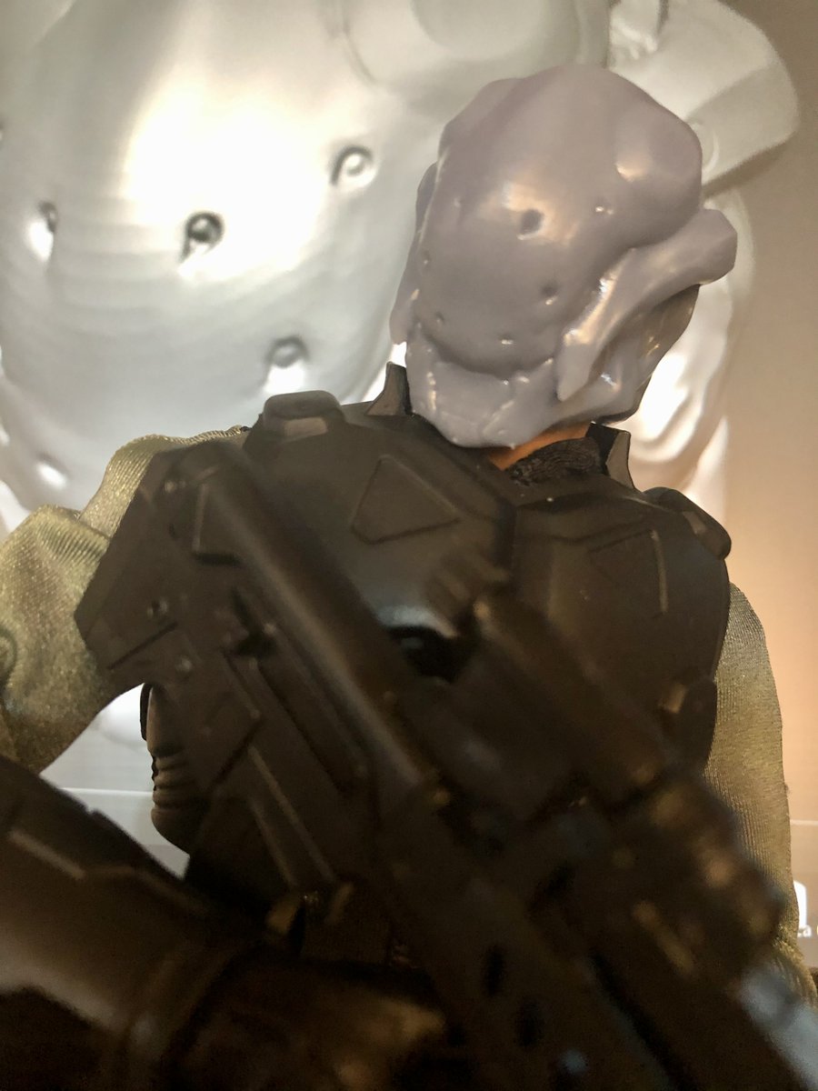 61 282 今度は頭がそんな良くない宇宙傭兵をイメージして作成。適当な兵隊さんフィギュアのどたまを取っ替えるだけで世界観が沸き立つのを目指す。一通り詰めたらちゃんと色塗ってやってみます。#ウガウガ3D 21/05/28 20:07