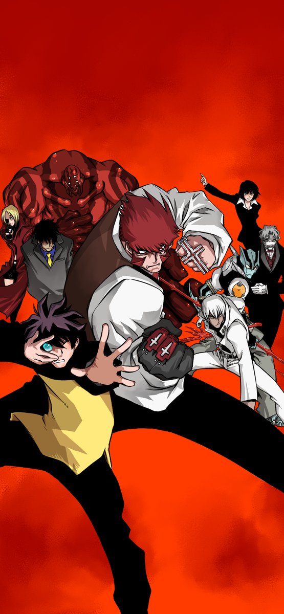 血界戦線Back2Back10巻8月4日発売…‼遠慮会釈ゼロでブッ飛ばしてみた災蠱競売篇もとうとう完結。いつもより大増ページでお送りする分厚い最終巻です。現時点での僕の全力ですが、テッペンにならない様に今後も頑張ります。恒例の壁紙も13ProMaxサイズ。構図的に上が足りなくなって描き足しました…‼