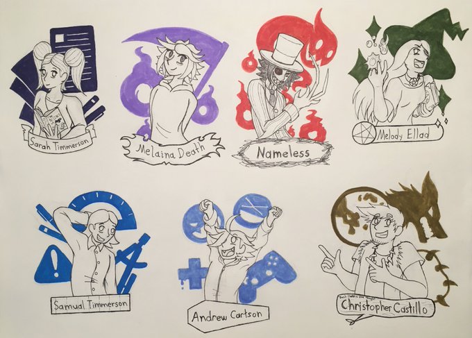 Here's the first set of drawings all together, featuring the main seven characters for Daughter of Death #inktober #inktoberchallenge #inktober2022