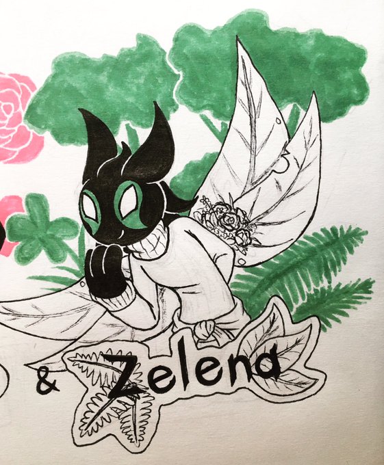 Inktober Day 24 Zelena is the spirit of plants and nature. She has a quiet demeanor, but in more of a thoughtful, observant, and gentle manner. She is always showered in love by her girlfriend Rose, who always sees the beauty in nature #inktober #inktober2022 #inktoberchallenge