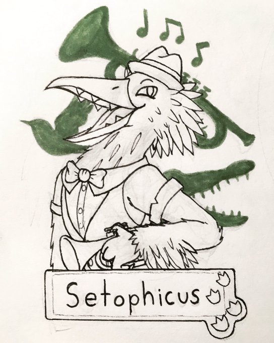 Inktober Day 13 Setophicus, a chimera who’s part bird, part crocodile, works as a server and a bartender at The Demon Bar. He also plays the trumpet in the establishment’s electro swing band. He won’t bite, but he’ll bring you a song #inktober #inktober2022 #inktoberchallenge