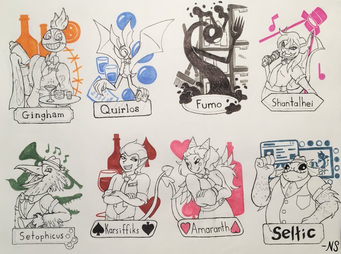 And here's the full set, featuring the staff of The Demon Bar, a true neutral establishment for magical beings that's a safe space for both good citizens and more shady individuals #inktober #inktoberchallenge #inktober2022