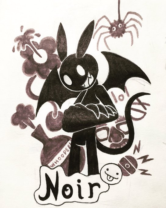Inktober Day 21 Noir is the spirit of mischief, the embodiment of pranks and harmless fun. He’s pretty chill and upbeat, but if you ask him for help with causing a little bit of mischief, you can practically hear the gears gleefully turning in his head #inktober #inktober2022