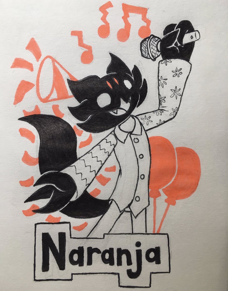 Inktober Day 22 Naranja is the spirit of partying and celebrations. He has a friendly and energetic personality as well as a love for karaoke, even though he’s not great at singing. Apparently he’s also the landlord for the apartment Melaina lives in #inktober #inktober2022