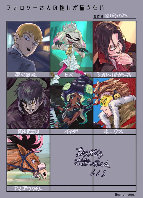 #フォロワーさんの推しが描きたい お待たせしてすみません!!! リクエストありがとうございました~! いろんなタイプの人(?)達が描けて面白かったです twitter.com/nigirisu/statu…