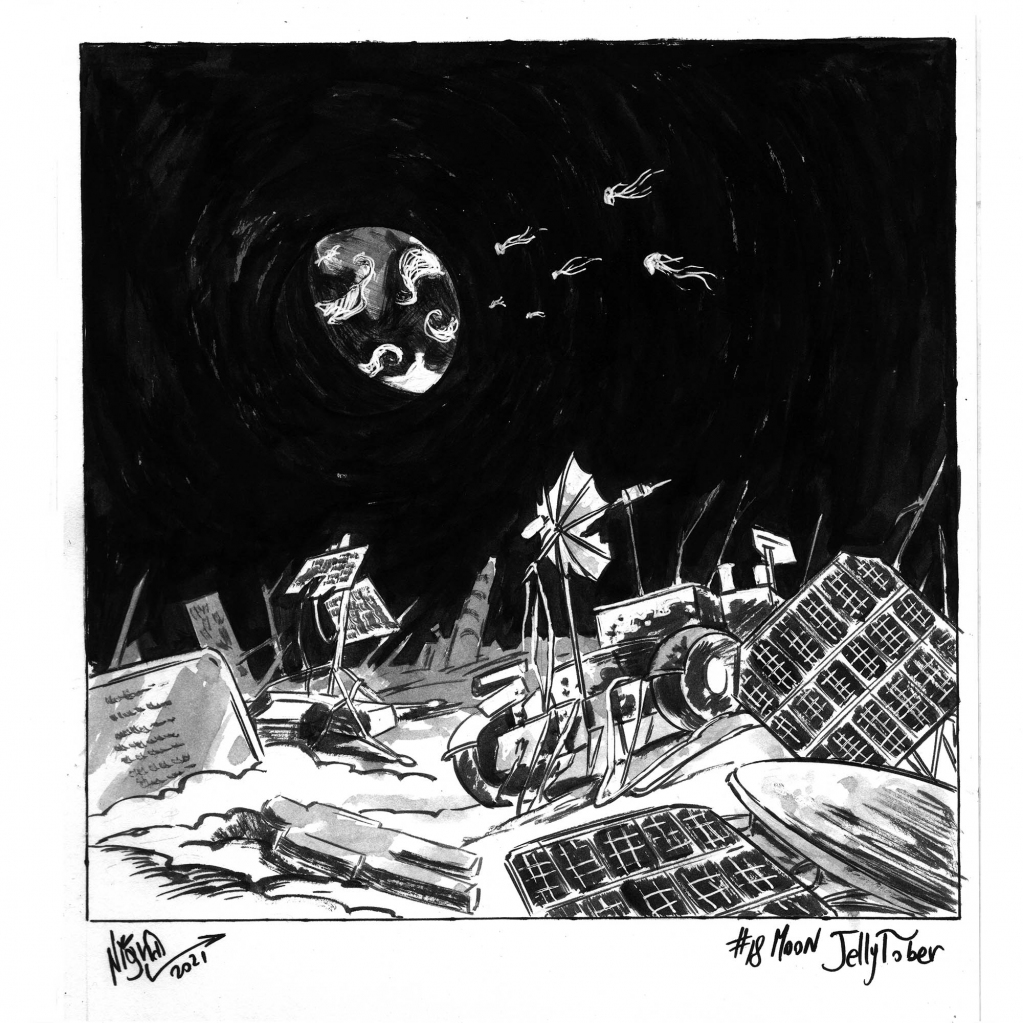 JELLYTOBER Chapter 1 Day 3 Vessel #jellytober #inktoberchallenge #sketch #inktober #inktober2021 #ink #drawing #Jellyfish #pollution #sea