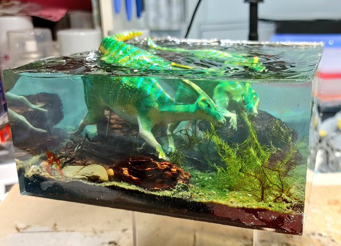 238 1253 スピノサウルス完成です。 造形から塗装、ジオラマまで全てオリジナルで製作じています。 21/06/05 21:01