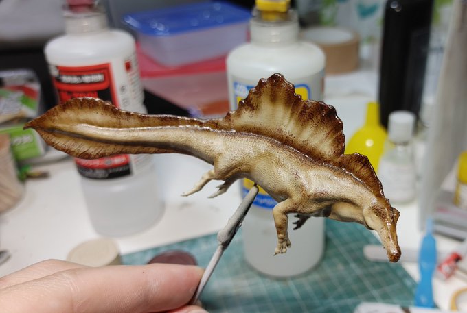 23 225 スピノサウルス塗装中。 自分で作っておいてアレですが、かなりいい出来ですねこれは。 21/06/01 20:30