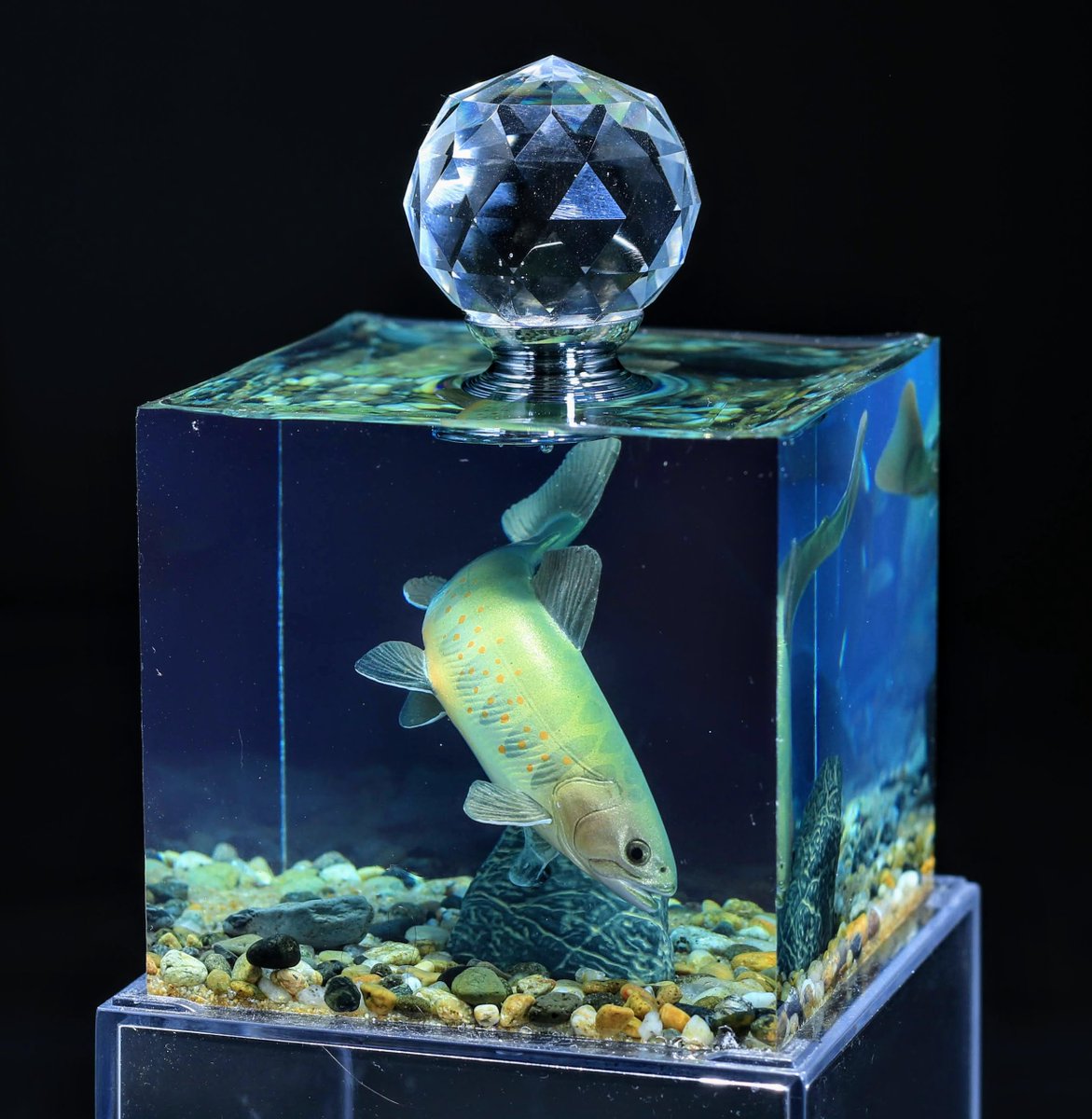 ご依頼のアマゴとヤマメの水中ジオラマ完成です。 とても良い出来になりました!