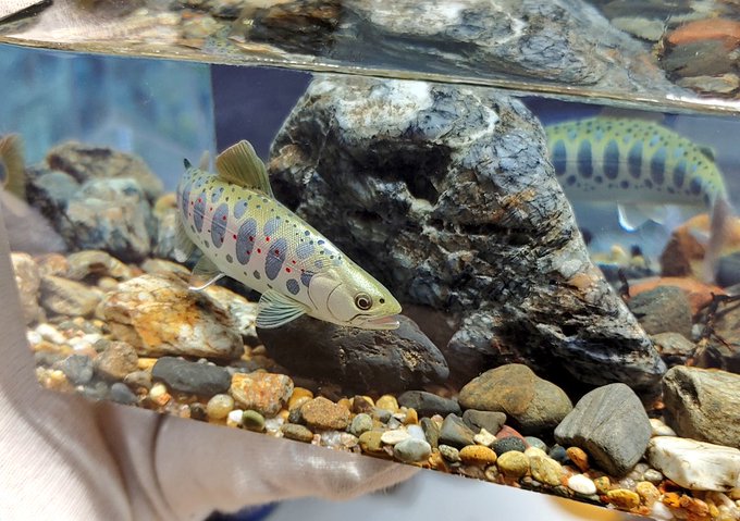 57 353 ご依頼のアマゴとヤマメの水中ジオラマ完成です。 とても良い出来になりました! 21/04/04 12:58