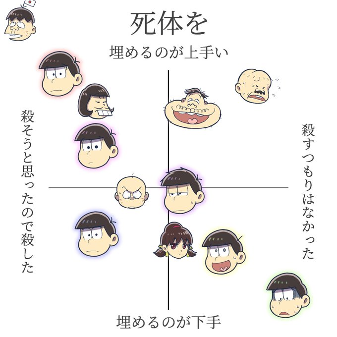 揃いのスーツを着られたら見分けがつかなかった頃のことを、今となってはもうはっきりとは思い出せない。 気づけば長い付き合いになったものです。今後ともよろしく。 #おそ松6周年だって早いね