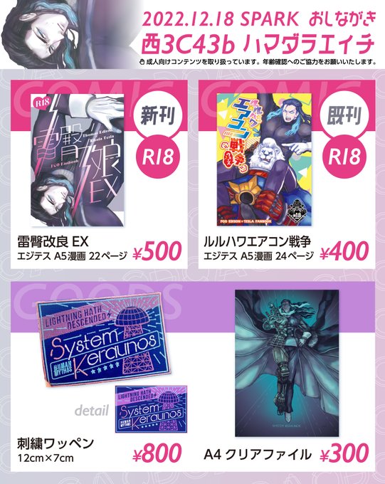 2022年12月18日(日)東京ビッグサイト COMIC CITY SPARK 17 西3C43b お品書きとエジテス新刊サンプルをアップしました! pixiv.net/artworks/10360…