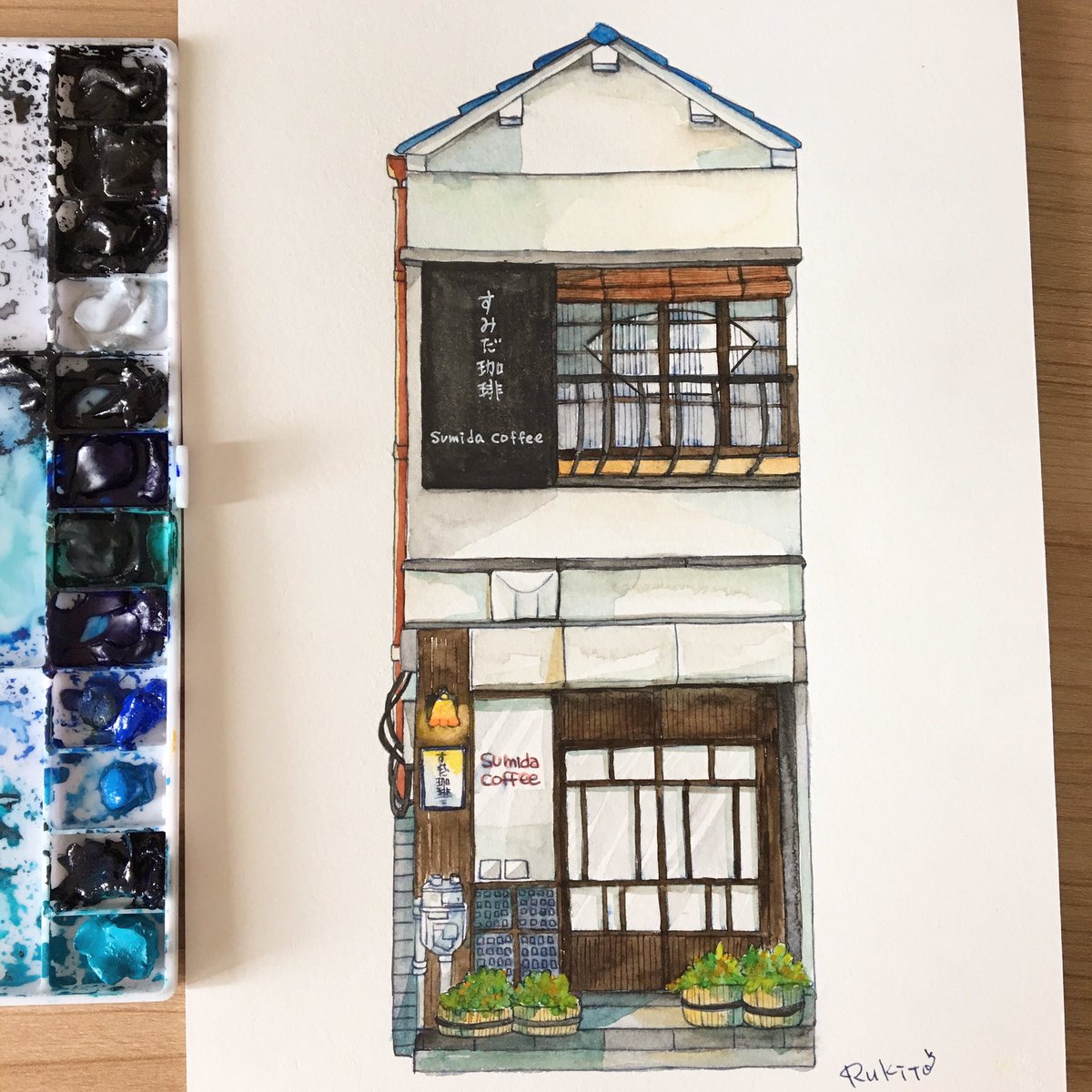 東京錦糸町にある「すみだ珈琲」さんを 描いてみました。 2、3年前に行ったことあるけど、 江戸切子のコーヒーカップに珈琲を 入れてくれて、 素朴だけど、とてもオシャレで 居心地のいいお店でした☺️ また行きたいな… #すみだ珈琲