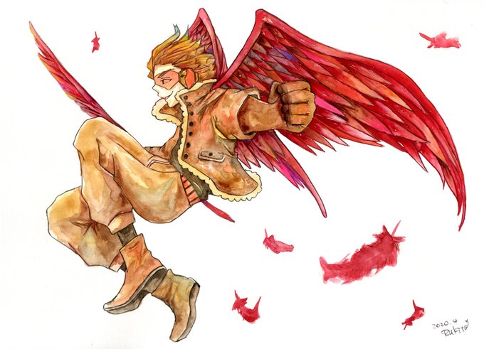 ホークスさん描いてみた。似てないけど。 絵の具はやっぱり楽しかった💕 #ヒロアカ #透明水彩絵の具