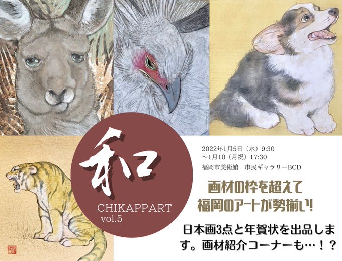 いよいよ1/5(水)〜1/10(月祝)に イラスト公募展「CHIKAPPART vol.5 和」がスタートいたします。 色紙サイズの新作、細長い掛軸風の作品を2点を出品いたしますので、どうぞ宜しくお願いします。 #CHIKAPPART #アナログイラスト