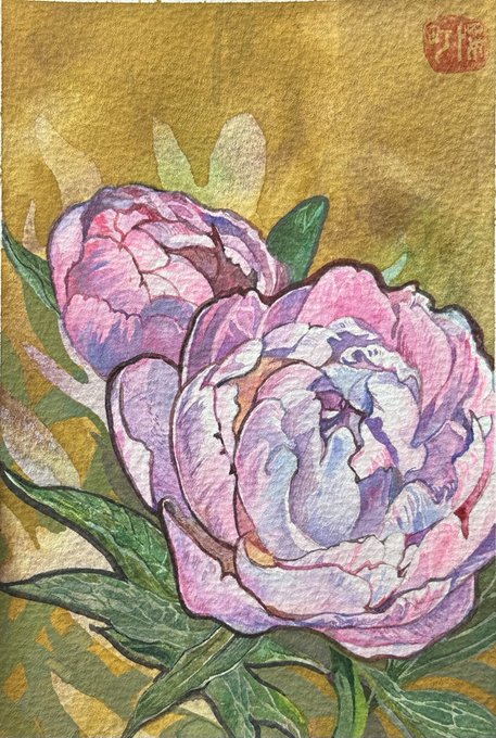 完成しました✨ 金の絵の具を使うと華やかになってとても便利ですね✨👏 いろいろな種類の絵の具(アクリルや透明水彩などですね)で販売されているので使い分けられるのもありがたい🙏 #絵描きさんと繋がりたい⠀ #アナログ絵描きさんと繋がりたい⠀ #一日一絵