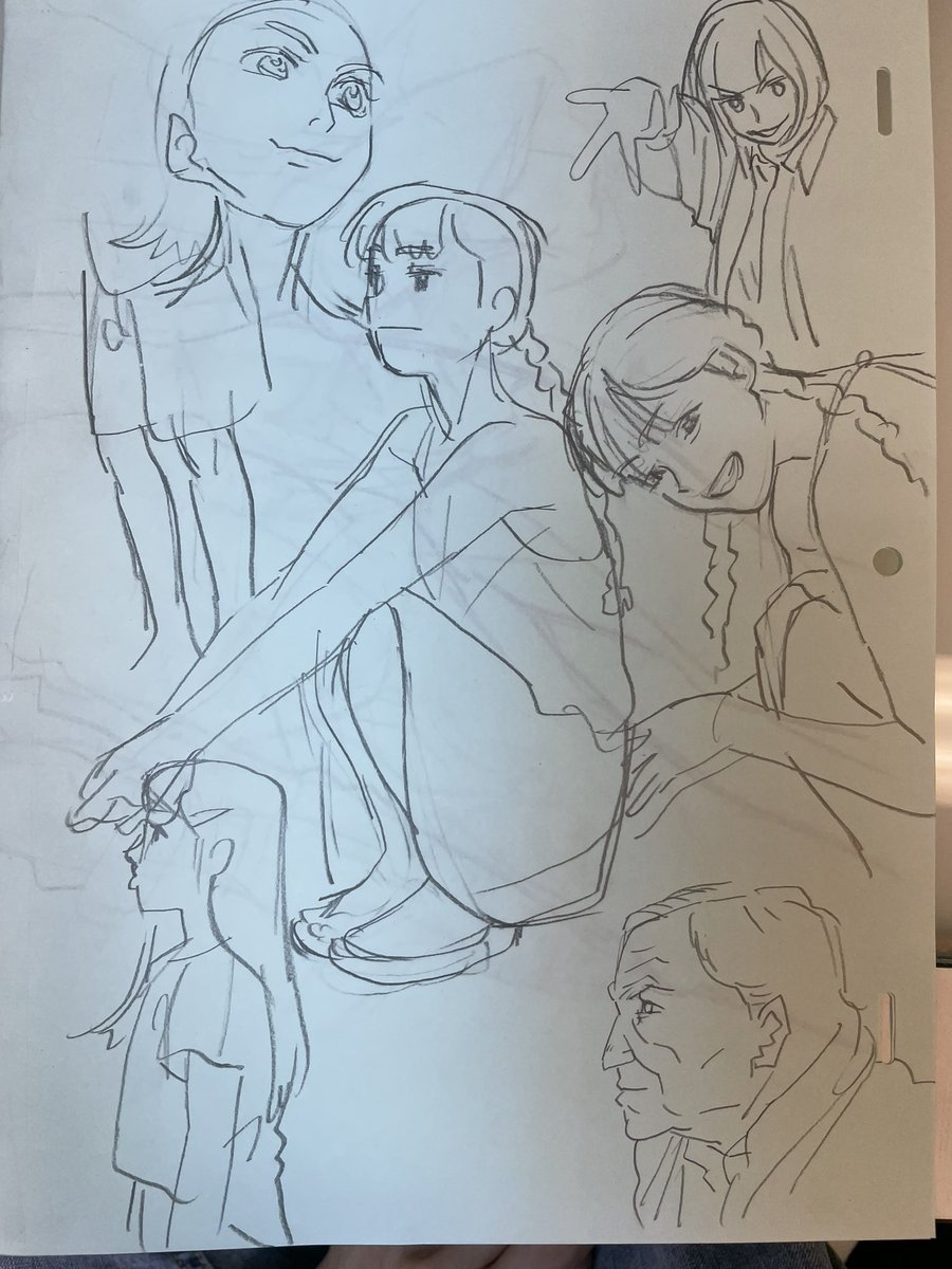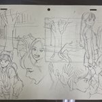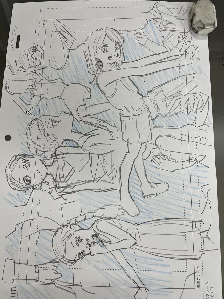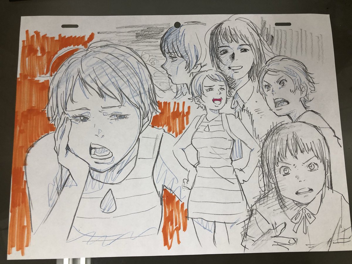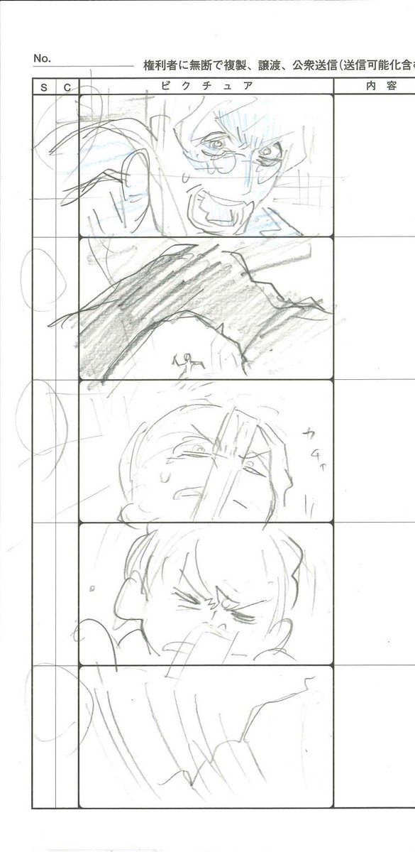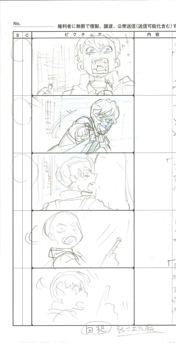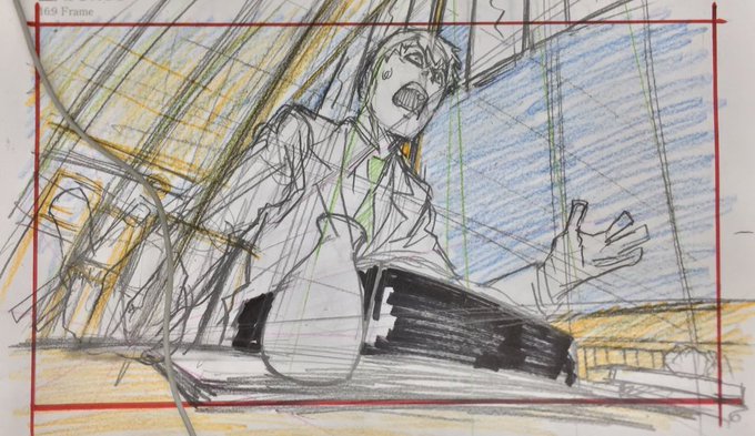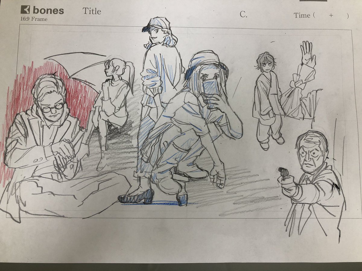 展開に必要そうな俺から1発で生み出せないコンテの構図を捻り出そうとしてるけど体力が今低下してて全然ダメ という落書き