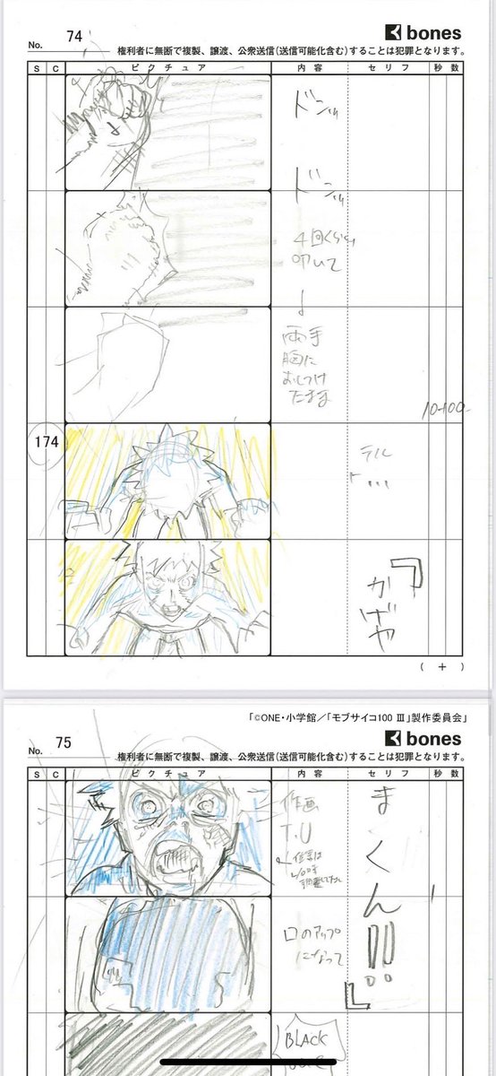696 4494 3期4話のコンテ演出させて頂きました。展開が多くて忙しい話数ですが、新人演出として色々勉強させて頂きました。アフレコ台本の表紙を頼まれたのでせっかくなので載せてみます#モブサイコ100 22/10/27 00:28