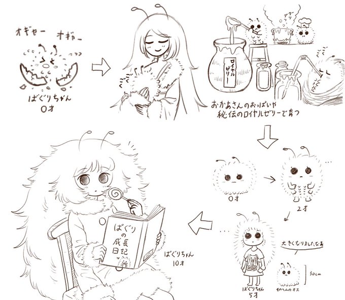 25 62 そういえばフサフサムシとばぐりちゃんの身長の設定公開していないなあと思い、描いた twitter.com/niitsu_kentaro… 23/05/28 16:49