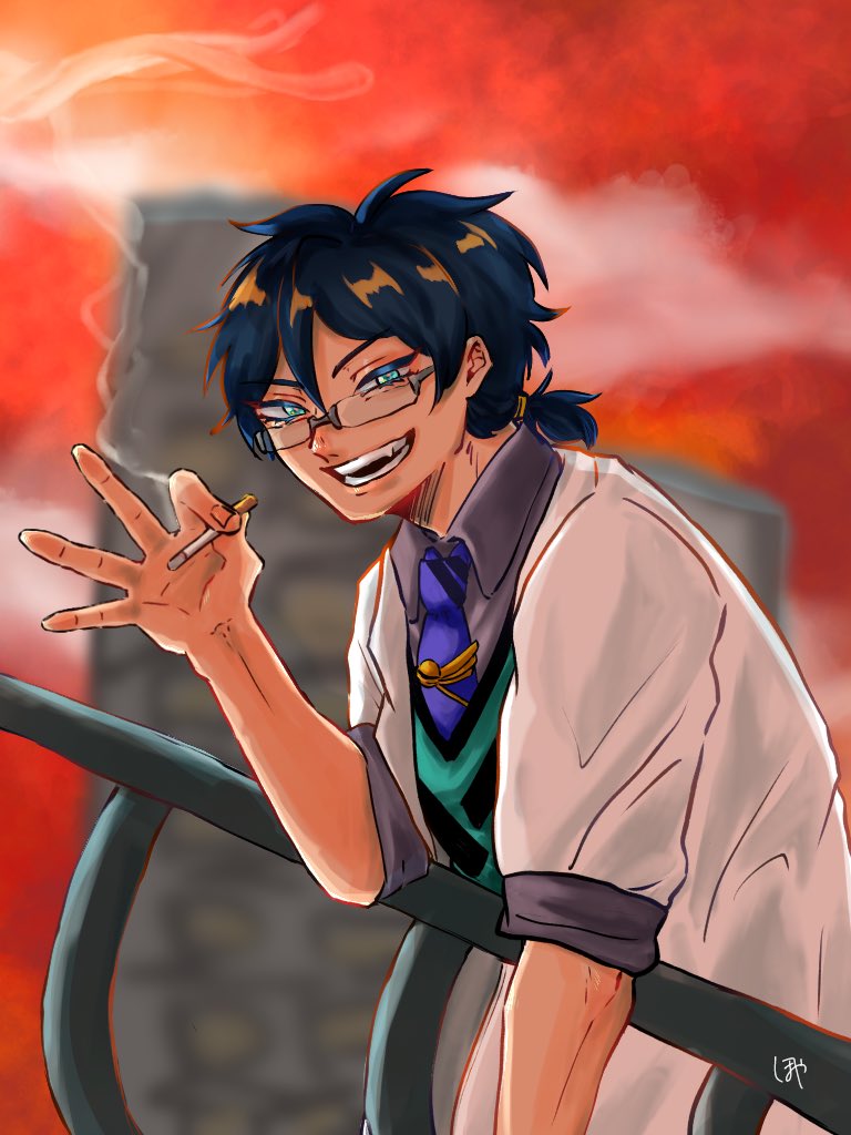 #まめねことレオス 長髪博士が屋上でタバコ吸ってるとこに居合わせたい妄想です。えっちくはないですけどワンクッション