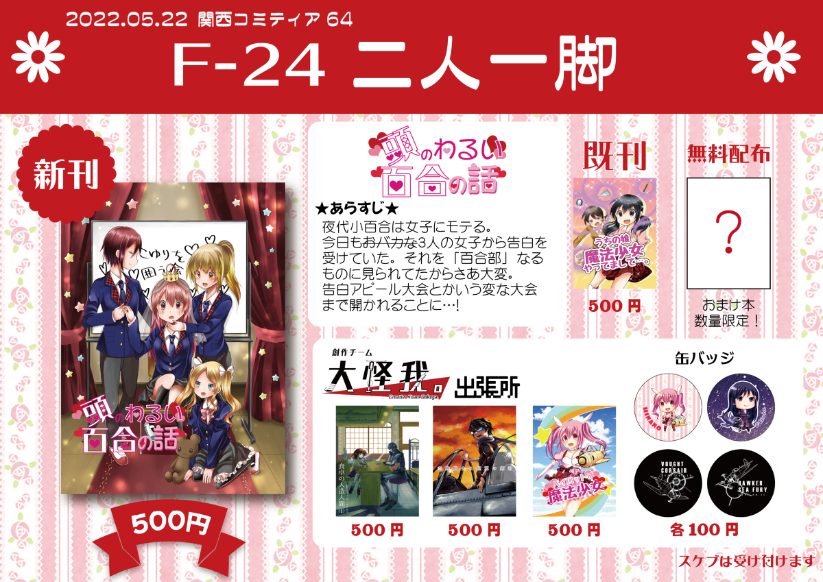 3 3 関西コミティア64お品書き #お品書き #オリジナル #関西コミティア #関西コミティア64 #百合 #百合漫画 pixiv.net/artworks/98418… 22/05/17 23:34