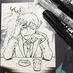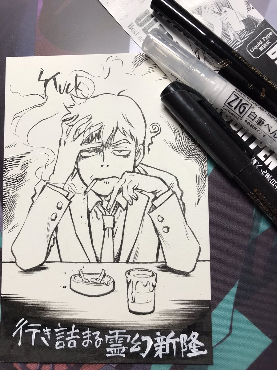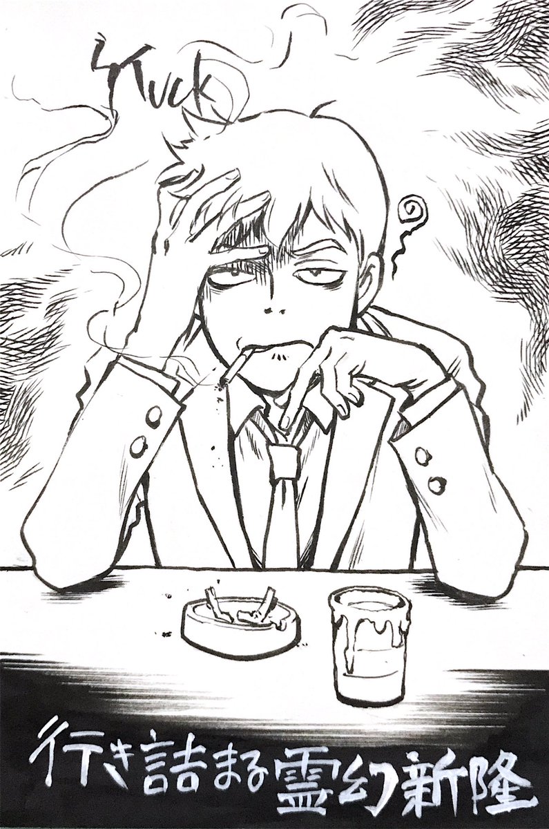 #インクトーバー 12日目 初参戦😗 12:STUCK 日本語のお題は「行き詰まる」なので行き詰まった人 霊幻新隆 #inktober2021 #inktober #Inktober2021day12 筆ペンの先が細いことより短くて描きにくいっす😅長さ大事だな〜。