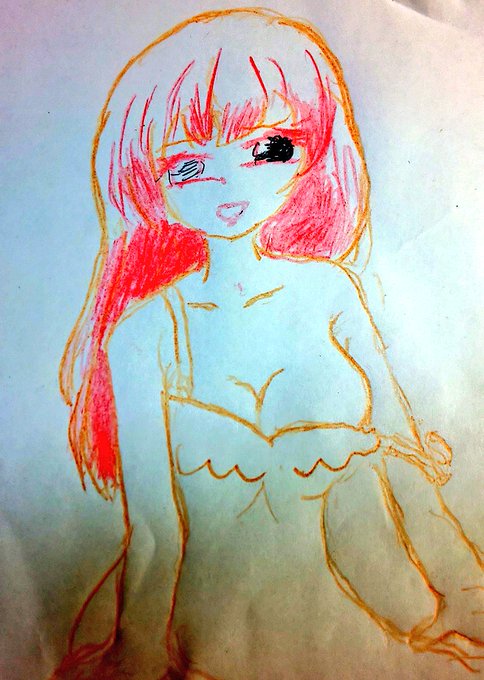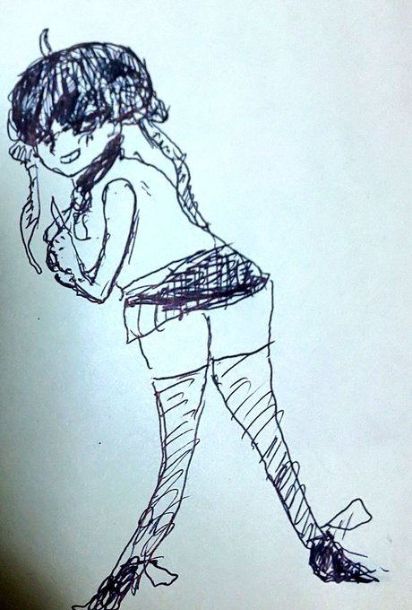 0 7 某アニメで太ももが話題なので太ももを強調(?)せし船長 #マリンのお宝 #ボールペン画 22/08/26 23:53