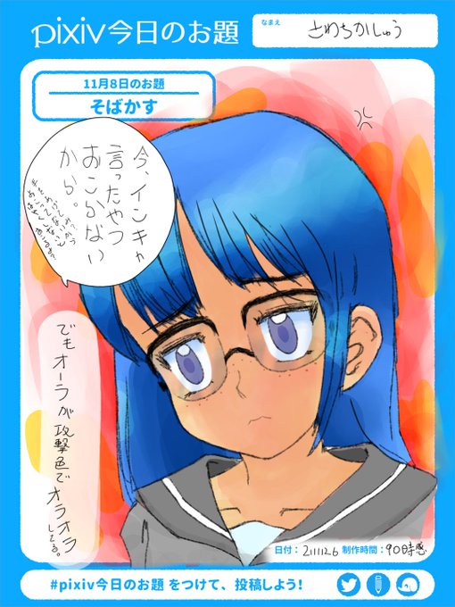 #リドローOK #sensei #pixiv今日のお題 #眼鏡 お題のぱっつんとかぶったから途中でやめてたけど、もったいないから色を置いて、表情たとかセリフをかわいげないヤツ... sketch.pixiv.net/items/65933356…