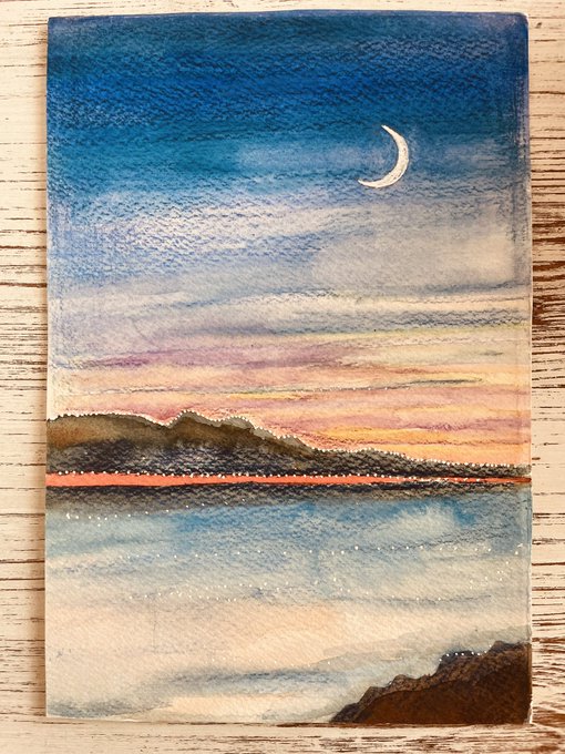 1 6 今日のカード🌟 #月 #夜明け前 #イラスト #原画 #もうすぐ夜明け 22/09/09 13:52