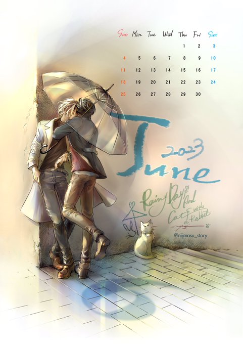 45 225 #バナナフィッシュFAカレンダー2023 ステキタグをお借りして。 月被りも過去絵もOKとのことで🙏(四年前の作ですが画中の壁にJuneをラクガキしたくて) 6月…少し先の季節☂️ 23/05/20 23:38