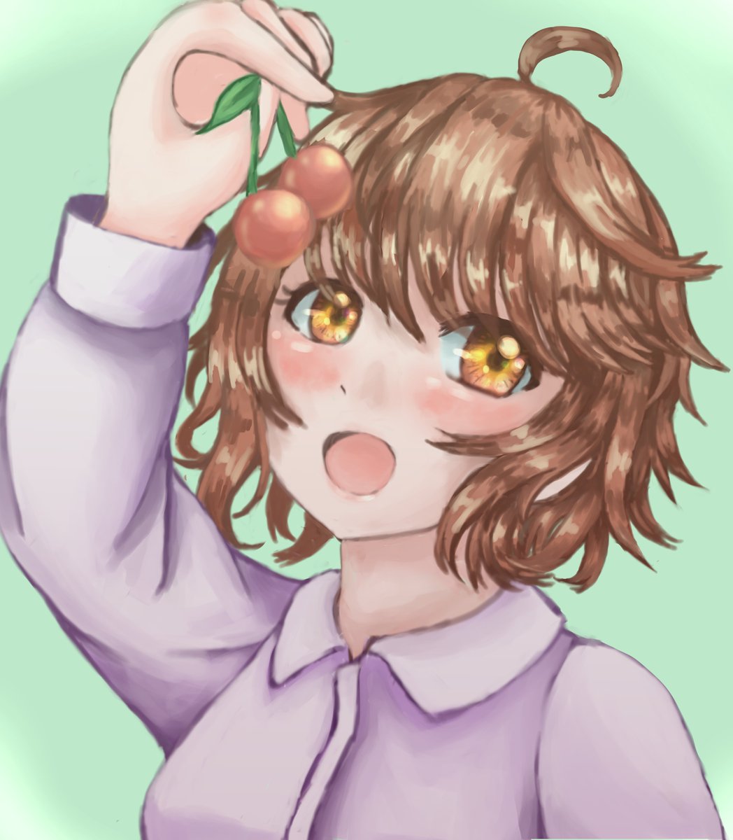 3 23 さくらんぼが旬なので描いてみました。 こんなショートヘアーを描いたことがないので新鮮でした。 #イラスト #絵 21/06/04 21:04